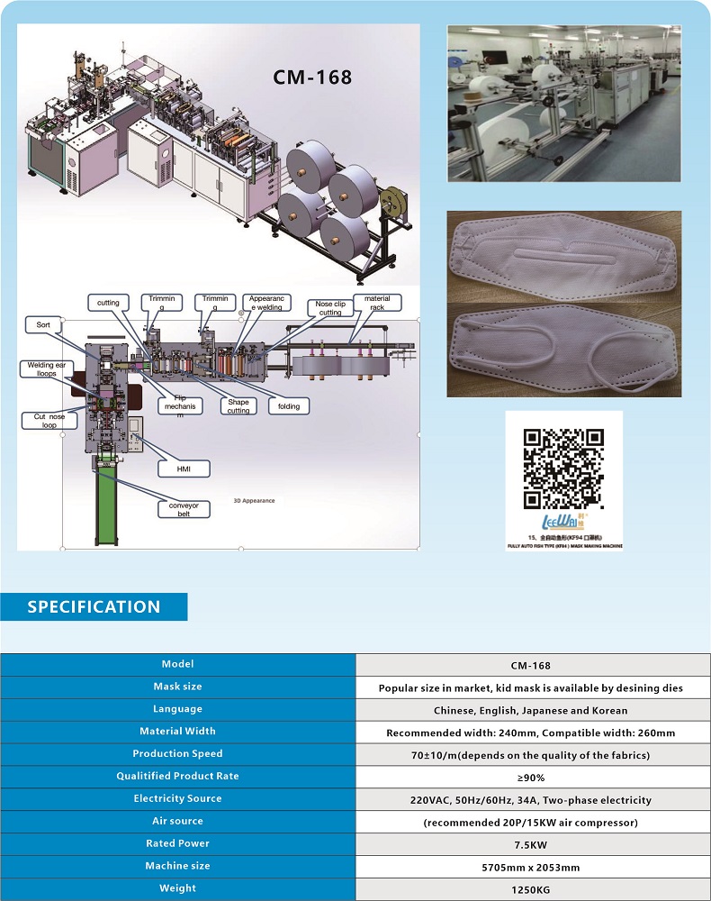 FULLY AUTO FISH TYPE (KF94 ) MASK MAKING MACHINE