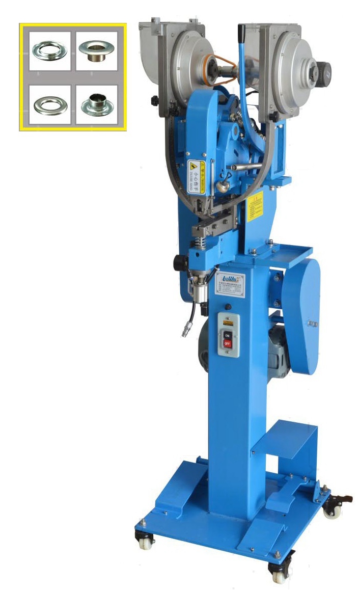 特征:★ 适用于各类鸡眼等纽扣制品装订。 ★ 把纽扣放进对应的2个料斗,开机会自动转动料斗,自动把纽扣排满轨道,自动把纽扣送到上下模具,电动马达带动。 ★ 只需踩下踏脚开关便可装订自如,简单易用。 ★ 配有防打手的安全保护罩。 ★ 配有可调亮度的镭射灯对位装置。 ★ 可另外加购选配打孔装置。